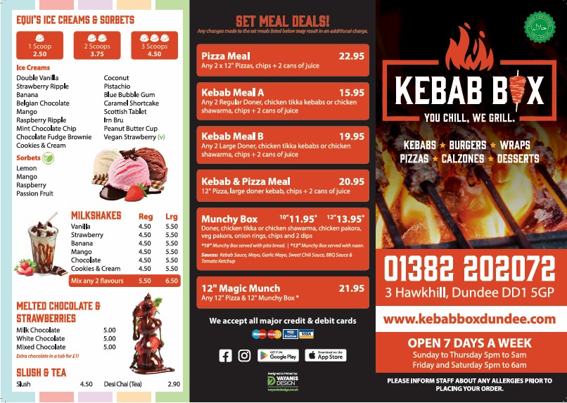 Introducing Kebab Box, a delightful gem nestled in the heart of Dundee at 3 Hawkhill. This vibrant eatery specializes in authentic Pakistani cuisine that tantalizes the taste buds. Diners rave about the flavorful kebabs and perfectly cooked fried chicken, boasting a satisfying crispiness on the outside and juiciness on the inside.